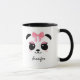 Cute panda face personalised mug. Pretty chubby kawaii panda face with pink cheeks and pink eyelashes wearing a pink ribbon. Easily add your name to personalise the mug. You can change the mug colour. Lovely gift for a girl, a daughter, girlfriend on a birthday or other special occasion.