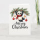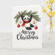 Wish someone a Merry Christmas with this delightful card featuring a cute panda bear cub spreading holiday cheer! 🐼🎄 The fluffy panda is joyfully hanging from a pine branch adorned with red and gold ornaments and berries, creating a festive scene. Its cosy red scarf adds to the charm of this adorable illustration, perfect for animal lovers and anyone who appreciates a unique holiday design. The text on the card is whimsically placed in a fun, festive font that complements the joyful theme. Spread holiday cheer with this perfect card that is sure to bring smiles and warm wishes to all who receive it! 🎁✨
