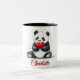 Cute Panda Holding Heart with Customizable Name Two-Tone Coffee Mug