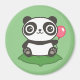 A cute baby panda sitting on the pillow and holding a balloon. A simple design for every panda lover. Customisable background colour.