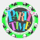 Cute Panda; Neon Green, Black & White Classic Round Sticker