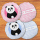This design has a loveable panda on the front, with a background pattern of spots in bright pink on white. There is space for you to add your own text on the back. You could personalise this for a child by adding their name and date of birth for example.