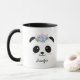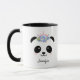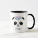 Cute panda queen personalised mug. Pretty chubby kawaii panda face with pink cheeks wearing a pink crown and blue flower arrangement. Easily add your name to personalise the mug. You can change the mug colour. Lovely gift for a girl, a daughter, girlfriend on a birthday or other special occasion.