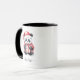 Pretty Panda Santa Merry Christmas Holiday mug. Kawaii style black, white and red colours panda bear with Santa hat and a holiday gift. Personalised text.