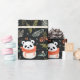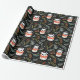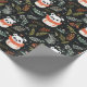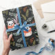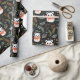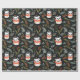 Cute Panda Winter holiday pattern wrapping paper. Cute kawaii panda with white scarf and winter botanicals pattern.