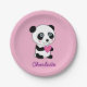 Cute Panda with a Pink Heart Personalised Name Mel Paper Plate