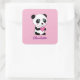 Cute Panda with a Pink Heart Personalised Name Square Sticker