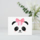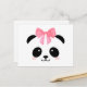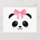 Cute panda with pink ribbon postcard. Kawaii black and white panda bear face with a pink ribbon.