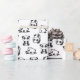 This cute, gender neutral pattern features doodle style pandas in various poses on white background.