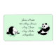 Two cute black and white pandas dining on bamboo shoots, followed by your name and address or any other message of your choice