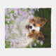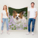 A White and Red Papillon dog sitting in a meadow surrounded by Cuckooflower. The Papillon is an alert, friendly and very smart toy breed. This little lovely doggy was photographed by Katho Menden, this fleece blanket is an enchanting special gift idea for doglovers.