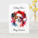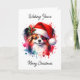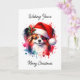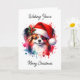 A cute watercolor illustration of a Papillon puppy dog with a Santa hat on personalised Christmas card. You can add (or delete) your name on the inside of the card.