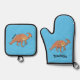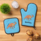 Cute parasaurolophus dinosaur cartoon illustration oven mitt & pot holder set