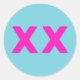 Cute Parting XX Custom Round Stickers are designer printed contemporary style stickers that can be customised. This design features "XX" on a modern background that can be edited and changed to your liking. The X X is a modern parting email gesture, the letters are the equivalent of smiling emojis and are a trendy and cute way to goodbye.