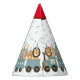 Celebrate any occasion with these adorable personalised party hats featuring a delightful safari train! A cast of whimsical safari animals, each sporting a festive party hat, chugs along on a charming train.
