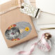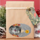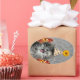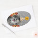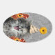 Cute party kitten on damask background oval sticker