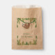 Fun light and dark green jungle leaves decorate these jungle theme | sloth birthday party thank you favour bags. Cute party sloth hanging from a vine in the jungle sporting a blue and white polka dot hat. The words "thanks for hanging out" are in curved text below the partying sloth with birthday boy's name front and centre. Shown here on brown kraft but can be changed to white. Perfect favour bags for animal, zoo, sloth, or other safari / jungle theme birthday party Thanks for hanging out!