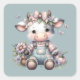 Cute Pastel Baby Cow in Overalls with Flowers Square Sticker