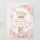 Cute Pastel Pink Bunny Floral Birthday Invitation
