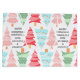 Large Gift Bag featuring cute colourful pink and pastel Christmas tree pattern on the white background. Easily personalise the text. - Kate Eden Art.