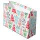 Cute Pastel Pink Colourful Christmas Tree Name Large Gift Bag