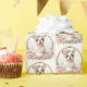 Pastel colours birthday wrapping paper featuring a cute puppy French Bulldog with "Happy Birthday".