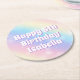 Cute Pastel Rainbow Sparkle Kids Birthday Party Round Paper Coaster