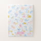 Add a special touch to your little girl's game collection with this adorable pastel pink and blue animal jigsaw puzzle. Puzzle has a pattern of elephants, dogs, cats, monkeys, unicorns, bunnies, koalas, turtles, narwhals, and more. Add the first name and monogram initial of your little girl for a personalised touch.