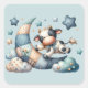 This whimsical design features an adorable black and white patchwork cow playfully lounging on a crescent moon stitched together from cosy quilted fabric patterns. Surrounded by softly glowing stars and dreamy pastel clouds, the entire scene captures a calming nighttime charm that’s perfect for nursery themes or dreamy children's spaces. The soft hues of blue, peach, and cream create a soothing palette, while charming details like smiling stars and floral stitching add a cosy, handmade feel. Ideal for those who love kawaii animals, bedtime illustrations, or country-inspired cuteness, this design blends cosy nostalgia with modern digital whimsy. Whether you're creating for a baby shower, decorating a child’s room, or curating playful celestial décor, this enchanting cow-in-the-moon scene adds a touch of gentle magic. AI generated artwork.