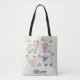 Adorable patchwork-style farm animals tote bag featuring a smiling cow, pig, sheep, and chicken with colourful gingham patterns.