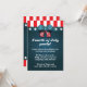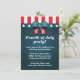 An adorable 4th of July party invitation. The invitation is red, white and blue like the American flag. At the top of the invitations are stripes, the bow in the centre also has stars and stripes. Very fun for this patriotic holiday!