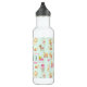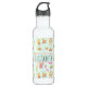 Water bottle with a whimsical pattern featuring children's toys and a collection of cute deer, giraffe, bears, and more delightful animals.