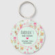 A baby shower thank you key chain with a whimsical pattern featuring a collection of delightful children's toys and animals.