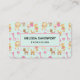 Business cards with a whimsical pattern featuring a collection of delightful children's toys and animals.