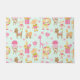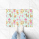 A door mat with a whimsical pattern featuring a collection of delightful children's toys and animals.