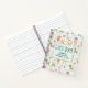 A personalised spiral notebook guest book with a whimsical pattern featuring a collection of delightful children's toys and animals.