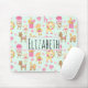A mouse pad with a whimsical pattern featuring a collection of delightful children's toys and animals.