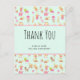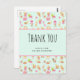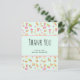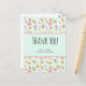 Thank you postcard with a whimsical pattern featuring children's toys and a collection of cute deer, giraffe, bears, and more delightful animals.