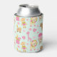 Can cooler with a whimsical pattern featuring a collection of delightful children's toys and animals.