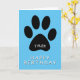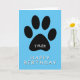 Cute Paw Print Blue Happy Birthday Card. Birthday greeting card featuring a black dog paw print, a name and a Happy birthday text on a blue background. The name is on the paw print - personalize the card with your name. You can also change the text Happy birthday.