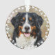 Cute custom pet ornament for dog or cat lovers. This design features a photo and name of your furry friend on the front and back with a cute and modern circle round frame of paw prints and hearts. This will be perfect as personalised gift.