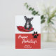 Cute Paw Red Script Dog Photo Happy Holiday Postcard. Cute Christmas holiday postcard with a trendy white script on red. Personalise the postcard with your favourite dog photo and your names or any text.