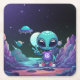 Cute Peace Alien & Space Ship Square Paper Coaster