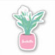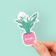A cute Peace Lily houseplant sticker featuring original illustration in gorgeous greens and pinks and custom name text. Perfect for personalising books and notebooks or any belongings you can think to stick a sticker on!