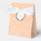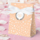Cute peach and white polka dot pattern wedding favor box with initials and monogram, featuring a refreshing pattern of irregular white dots on peach background and a delicate laurel branch wreath frame. This trendy and cute, monogrammed favor box adds a touch of personalized elegance to your wedding reception. Fill it with treats, small gifts, or heartfelt notes to thank your guests for sharing your special day. The classic dots and personalized monogram create a memorable keepsake they'll cherish long after the celebration. Perfect for other special occasions too such as bridal showers, birthday parties, baby showers etc.