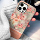 This charming phone case showcases a watercolor design of cute peach roses with soft greenery on a muted sage background. The delicate floral arrangement radiates timeless elegance, perfect for those who love feminine and trendy designs. A customisable white nameplate on a peach band adds a stylish and personal touch, making this case a perfect accessory for daily use or a thoughtful gift.