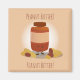Magnet with an illustrated design of a smiling peanut butter jar that is standing between two piles of peanuts. The words “Peanut Butter? Peanut Better!” show above and below the cartoon character. All of the words can be customised.