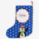 This Stocking is cute AND classy with a waving Penguin on a Snowflake field.