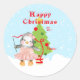 A cute happy Christmas sticker designed with a cartoon baby ballerina penguin wearing a pink tutu and twirling a red ribbon with a blue snowy background . Happy Christmas is in a red decorative font . Makes a cute sticker to attach to gifts and envelopes for little girls who love penguins and ballet dancing. Can be customised by changing the title then personalise by adding to and from names if needed or leave as it is to add the names later by pen. Please take note: due to the glossy finish on these great stickers, we suggest using a Sharpie marker when writing on them, instead of a ballpoint pen.