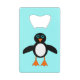 This awesome bottle opener features a cute penguin character with a white tummy, big blue eyes with black pupils and cute orange feet and beak. This charming little winter bird is sure to delight children and adults. The penguin sits on an icy pale blue background to remind him of his chilly Arctic home.